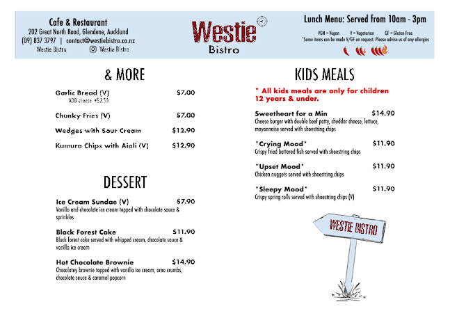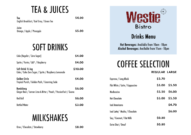 Operating hours for Westie Bistro